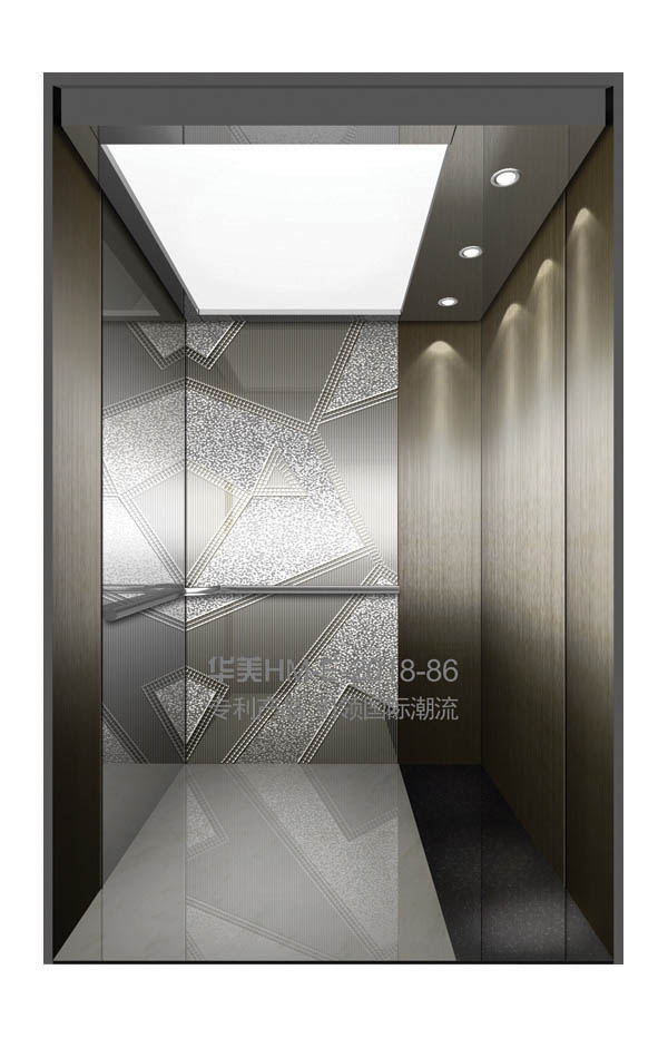 华美全新推出的“浮雕大师”不锈钢艺术轿厢,图案优美,内部更采用了“浮雕大师”工艺,使浮雕面起伏流畅、逼真顺滑、质感超然、金碧辉煌,折射出真金白银的光泽效果,充分体现了浮雕大师与K金的完美结合,极具欣赏价值。且其浮雕面具有耐摩擦、抗指纹、易清洗等优点,是引领国际潮流的专利新产品,创造了全新的艺术境界。
