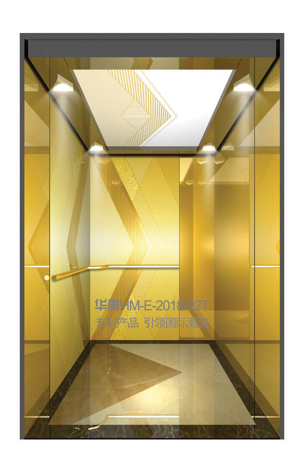 华美全新推出的“浮雕大师”不锈钢艺术轿厢,图案优美,内部更采用了“浮雕大师”工艺,使浮雕面起伏流畅、逼真顺滑、质感超然、金碧辉煌,折射出真金白银的光泽效果,充分体现了浮雕大师与K金的完美结合,极具欣赏价值。且其浮雕面具有耐摩擦、抗指纹、易清洗等优点,是引领国际潮流的专利新产品,创造了全新的艺术境界。