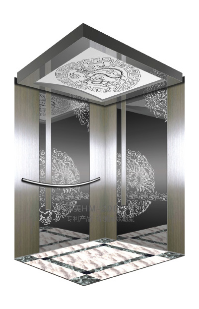 华美全新推出的“浮雕大师”不锈钢艺术轿厢,图案优美,内部更采用了“浮雕大师”工艺,使浮雕面起伏流畅、逼真顺滑、质感超然、金碧辉煌,折射出真金白银的光泽效果,充分体现了浮雕大师与K金的完美结合,极具欣赏价值。且其浮雕面具有耐摩擦、抗指纹、易清洗等优点,是引领国际潮流的专利新产品,创造了全新的艺术境界。