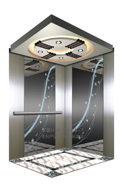 华美全新推出的“浮雕大师”不锈钢艺术轿厢,图案优美,内部更采用了“浮雕大师”工艺,使浮雕面起伏流畅、逼真顺滑、质感超然、金碧辉煌,折射出真金白银的光泽效果,充分体现了浮雕大师与K金的完美结合,极具欣赏价值。且其浮雕面具有耐摩擦、抗指纹、易清洗等优点,是引领国际潮流的专利新产品,创造了全新的艺术境界。