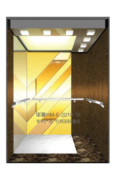 华美全新推出的“浮雕大师”不锈钢艺术轿厢,图案优美,内部更采用了“浮雕大师”工艺,使浮雕面起伏流畅、逼真顺滑、质感超然、金碧辉煌,折射出真金白银的光泽效果,充分体现了浮雕大师与K金的完美结合,极具欣赏价值。且其浮雕面具有耐摩擦、抗指纹、易清洗等优点,是引领国际潮流的专利新产品,创造了全新的艺术境界。