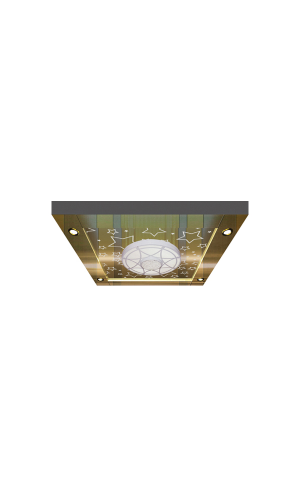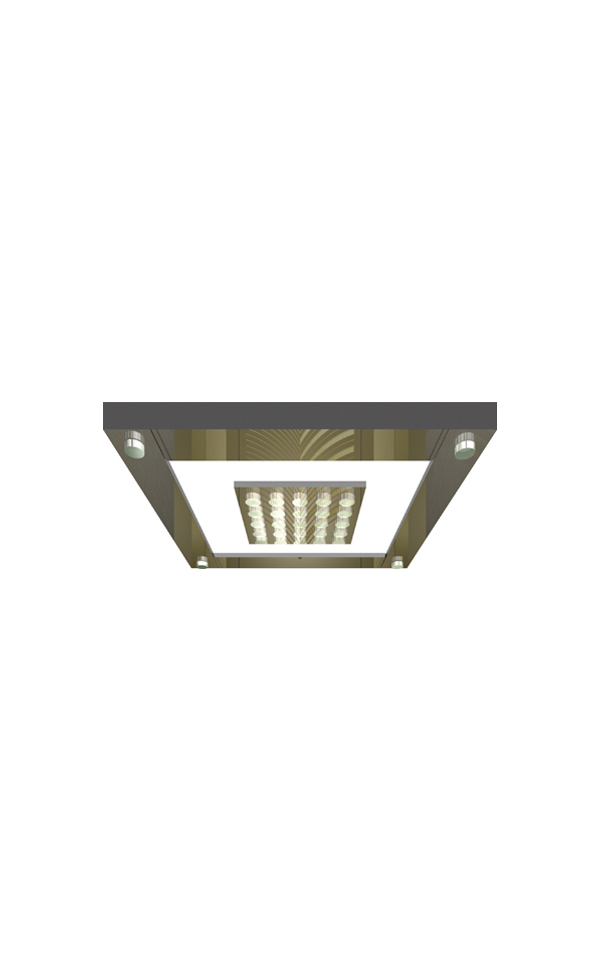 为创造更加优美的轿厢环境,本公司设计制造了多种款式的照明吊顶,供客户在购买轿厢装潢产品时根据个人爱好自由选配。