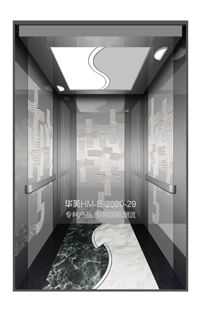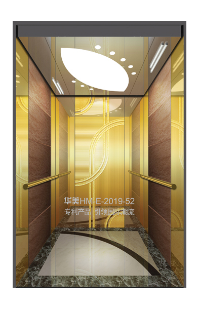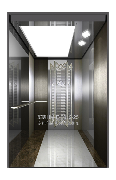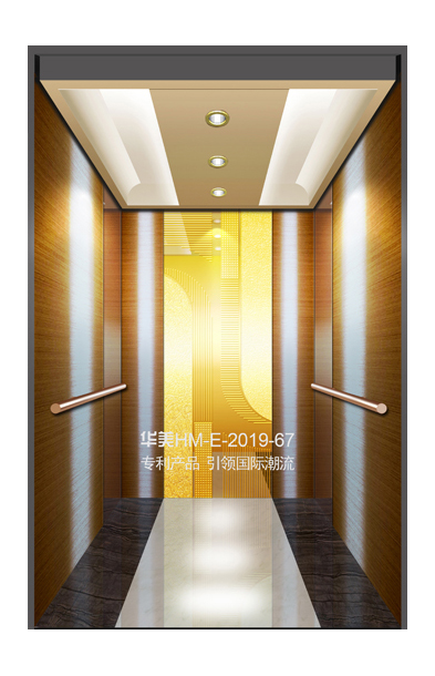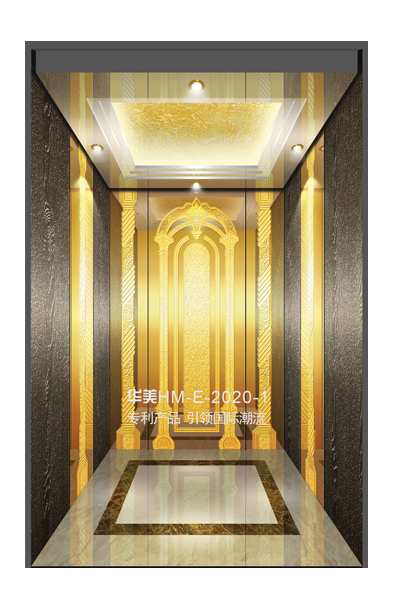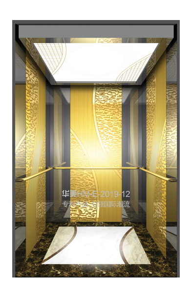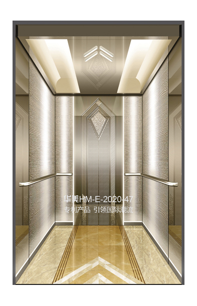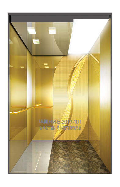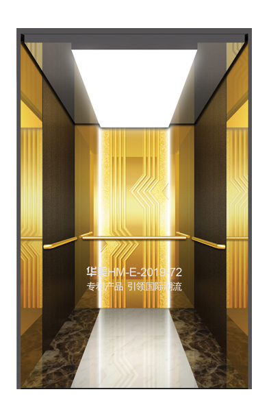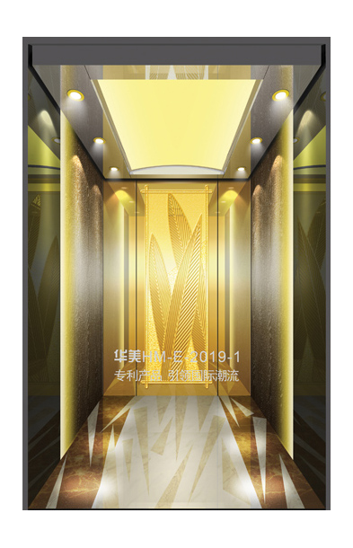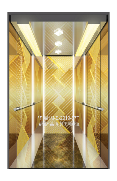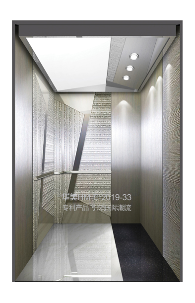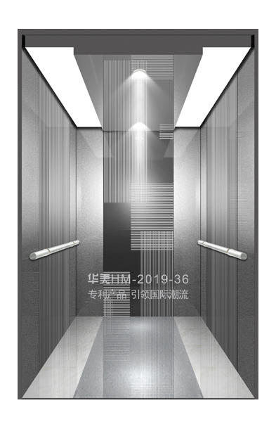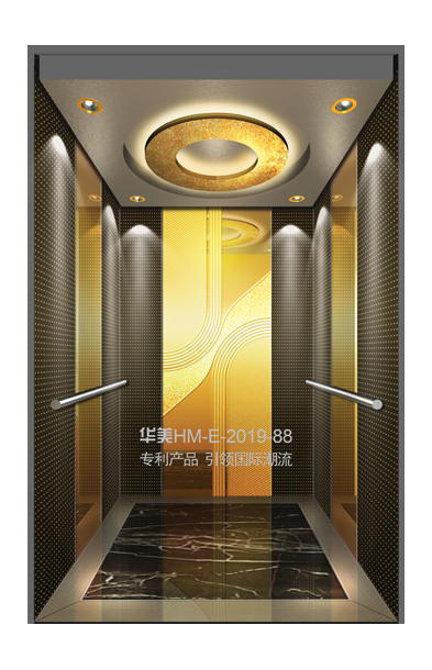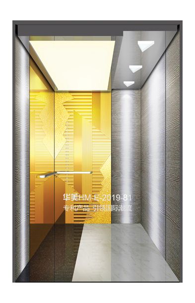 华美全新推出的“浮雕大师”不锈钢艺术轿厢,图案优美,内部更采用了“浮雕大师”工艺,使浮雕面起伏流畅、逼真顺滑、质感超然、金碧辉煌,折射出真金白银的光泽效果,充分体现了浮雕大师与K金的完美结合,极具欣赏价值。且其浮雕面具有耐摩擦、抗指纹、易清洗等优点,是引领国际潮流的专利新产品,创造了全新的艺术境界。