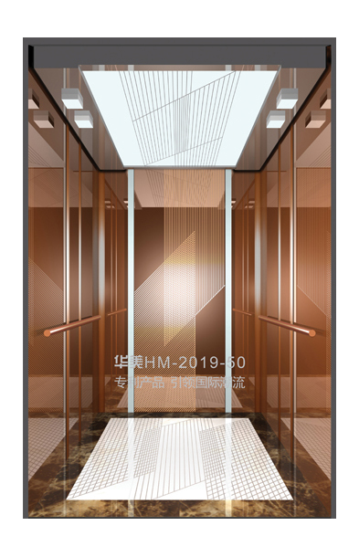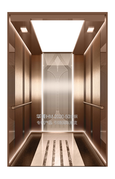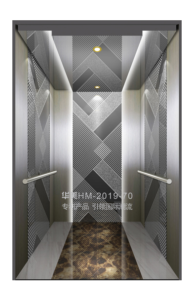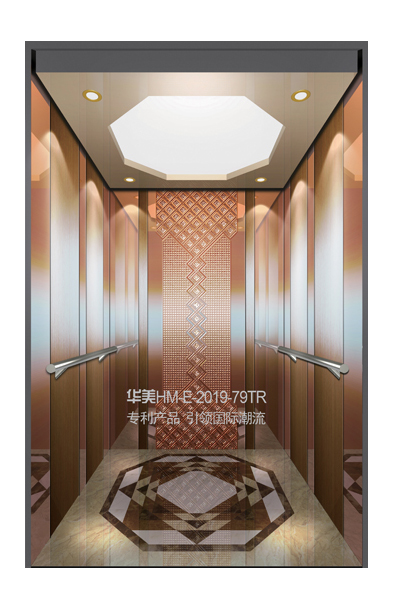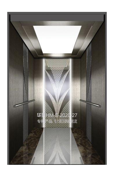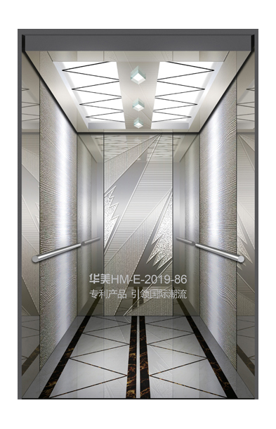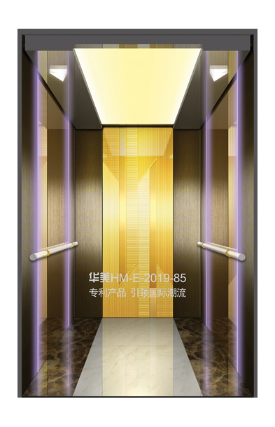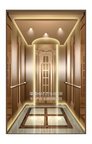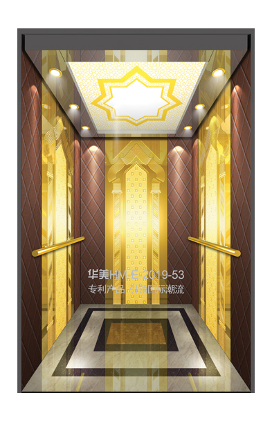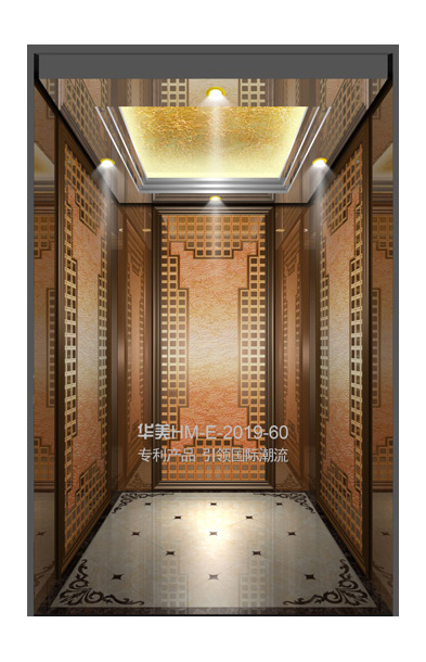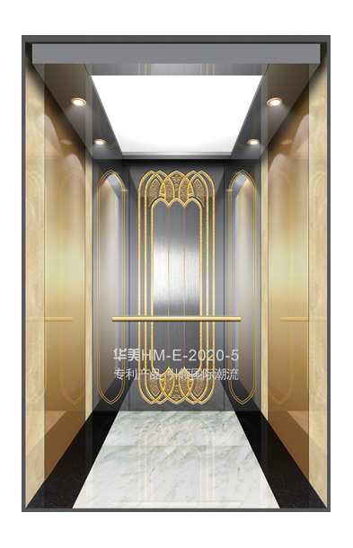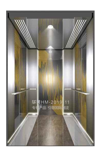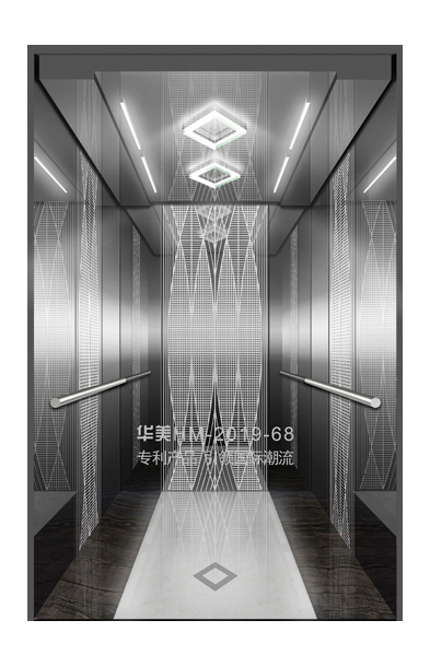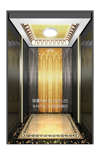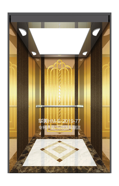 华美全新推出的“浮雕大师”不锈钢艺术轿厢,图案优美,内部更采用了“浮雕大师”工艺,使浮雕面起伏流畅、逼真顺滑、质感超然、金碧辉煌,折射出真金白银的光泽效果,充分体现了浮雕大师与K金的完美结合,极具欣赏价值。且其浮雕面具有耐摩擦、抗指纹、易清洗等优点,是引领国际潮流的专利新产品,创造了全新的艺术境界。