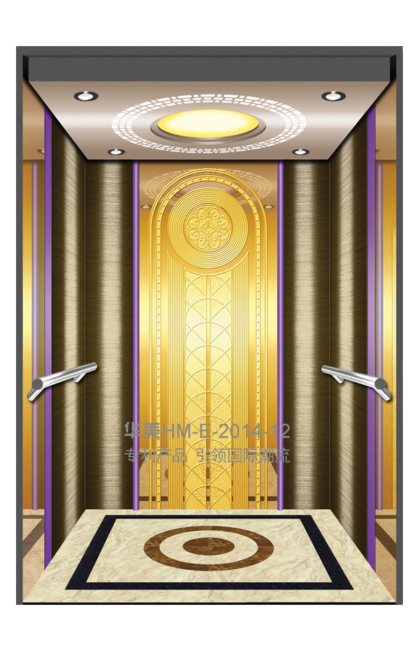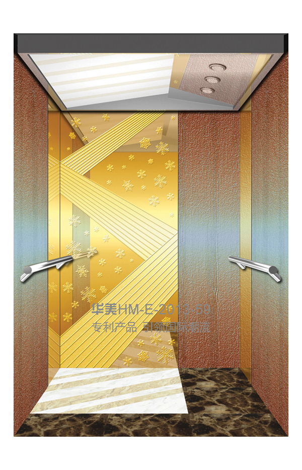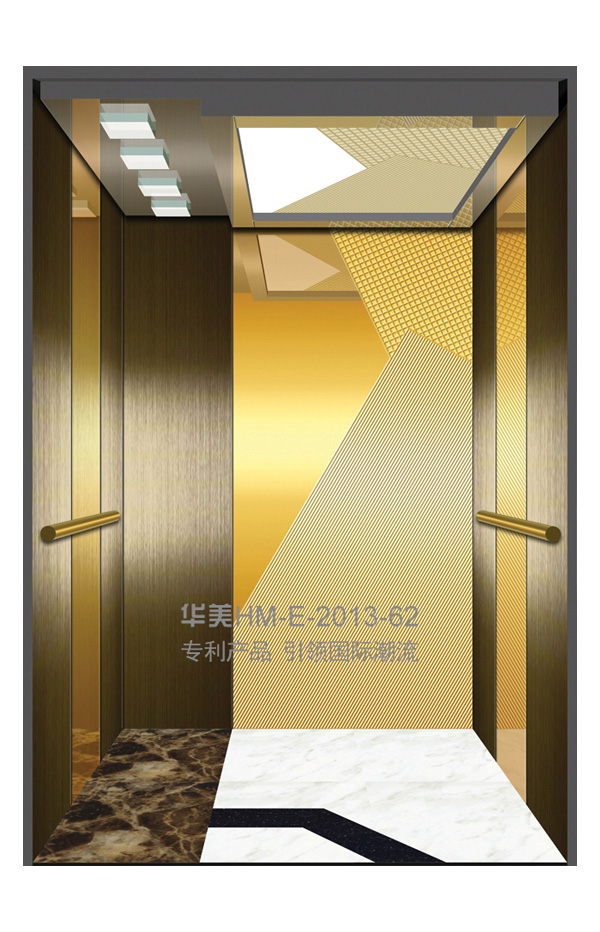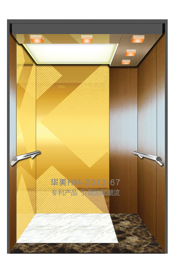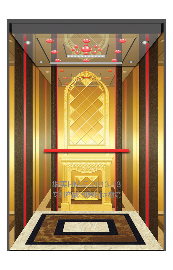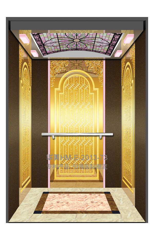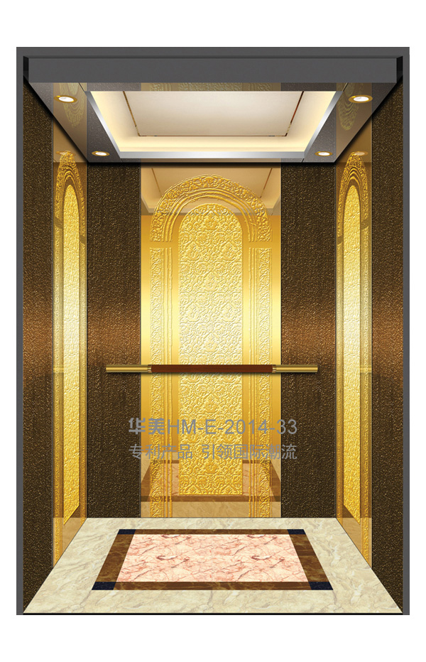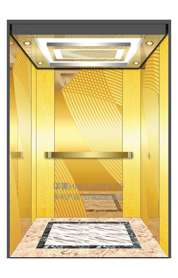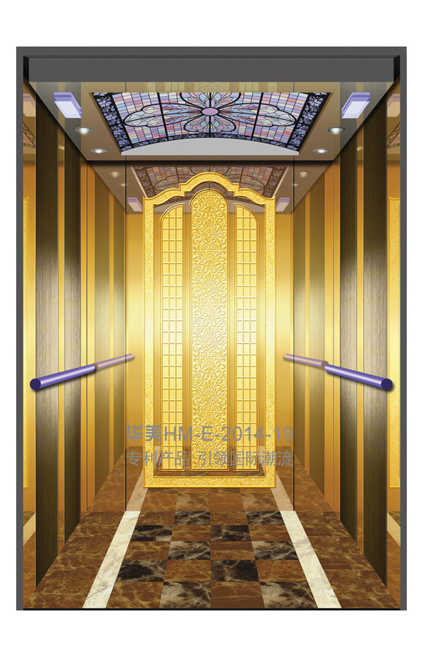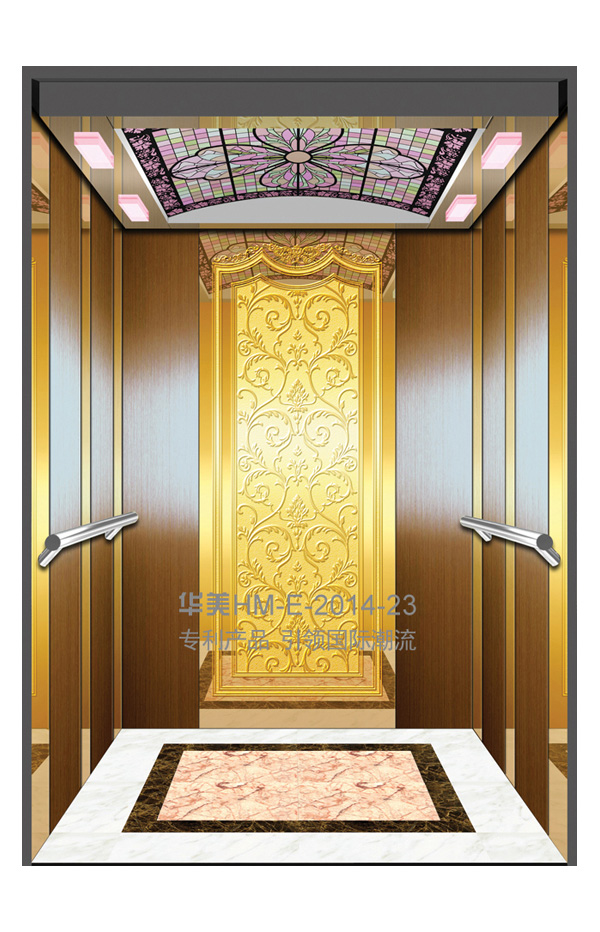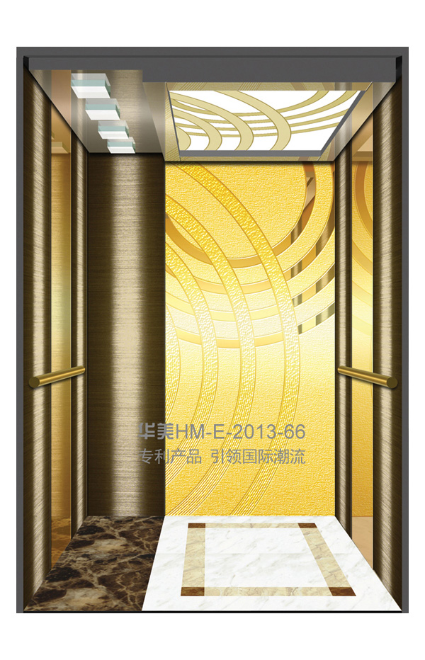 华美全新推出的“浮雕大师”不锈钢艺术轿厢,图案优美,内部更采用了“浮雕大师”工艺,使浮雕面起伏流畅、逼真顺滑、质感超然、金碧辉煌,折射出真金白银的光泽效果,充分体现了浮雕大师与K金的完美结合,极具欣赏价值。且其浮雕面具有耐摩擦、抗指纹、易清洗等优点,是引领国际潮流的专利新产品,创造了全新的艺术境界。