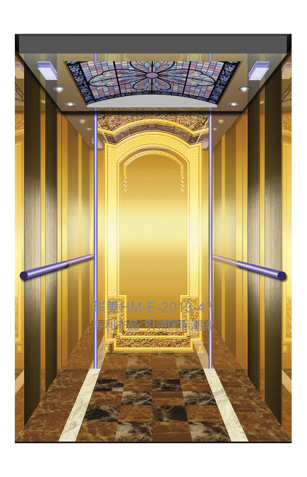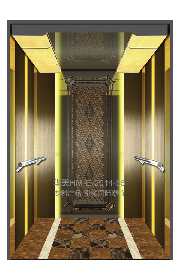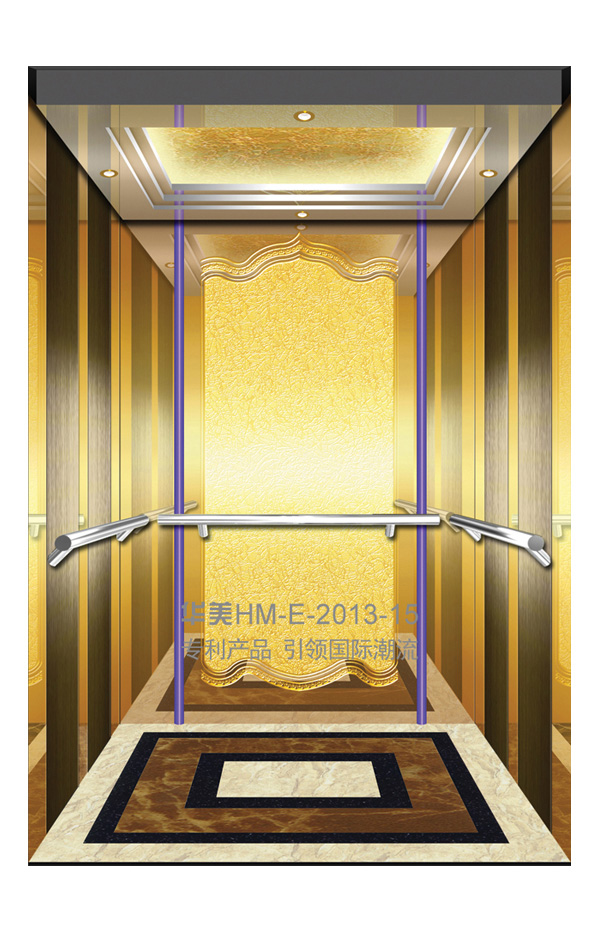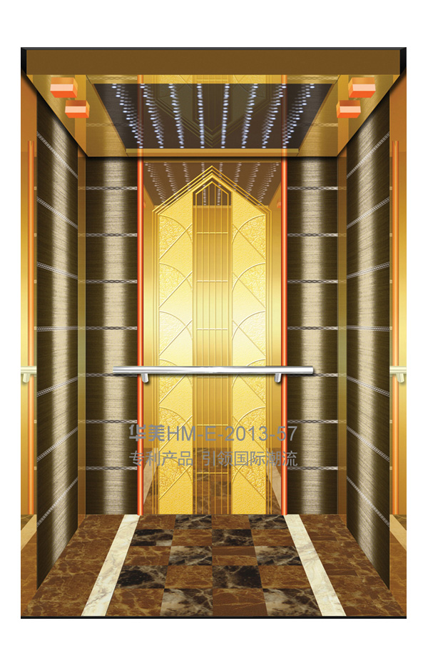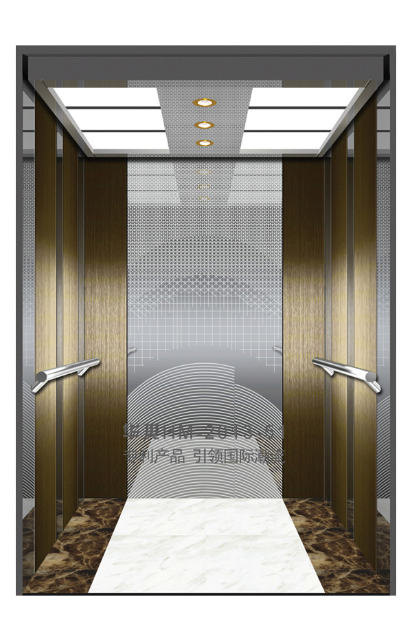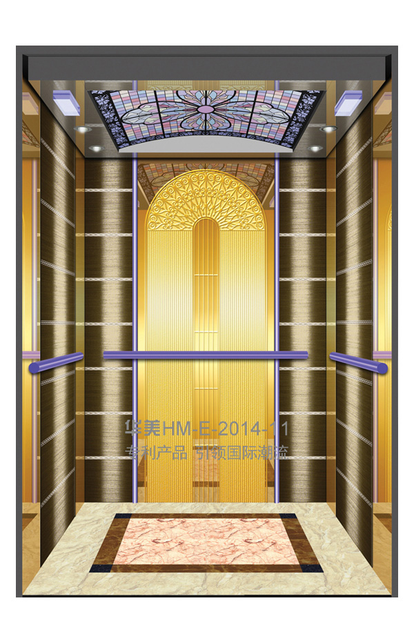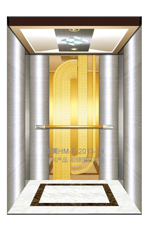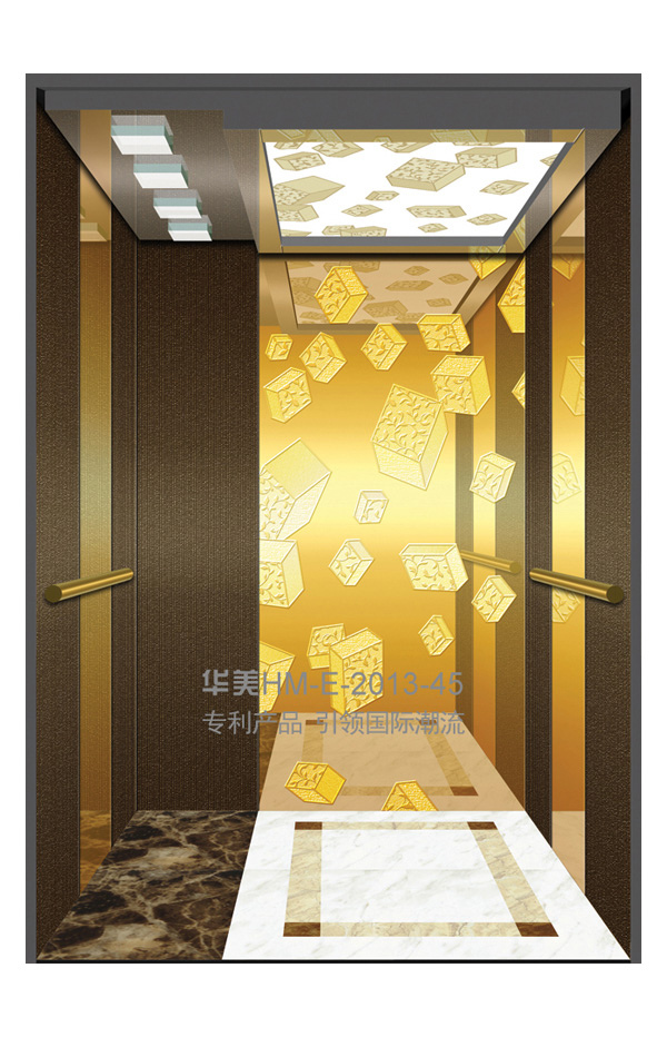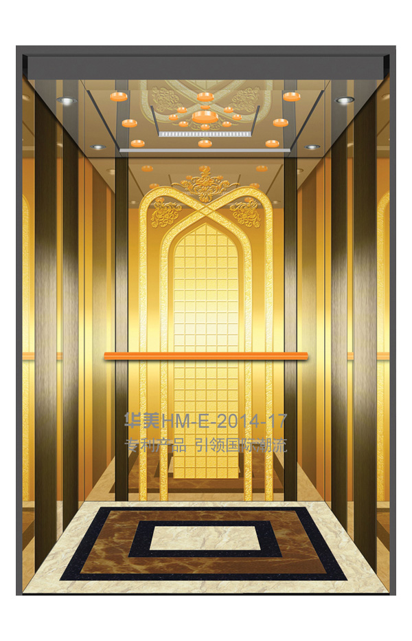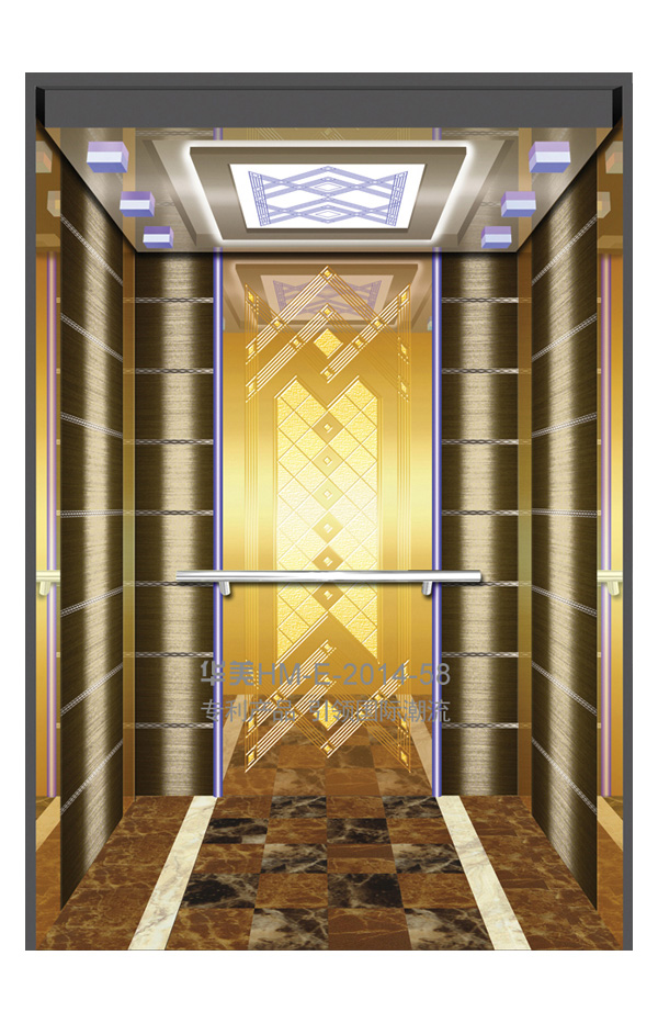 华美全新推出的“浮雕大师”不锈钢艺术轿厢,图案优美,内部更采用了“浮雕大师”工艺,使浮雕面起伏流畅、逼真顺滑、质感超然、金碧辉煌,折射出真金白银的光泽效果,充分体现了浮雕大师与K金的完美结合,极具欣赏价值。且其浮雕面具有耐摩擦、抗指纹、易清洗等优点,是引领国际潮流的专利新产品,创造了全新的艺术境界。