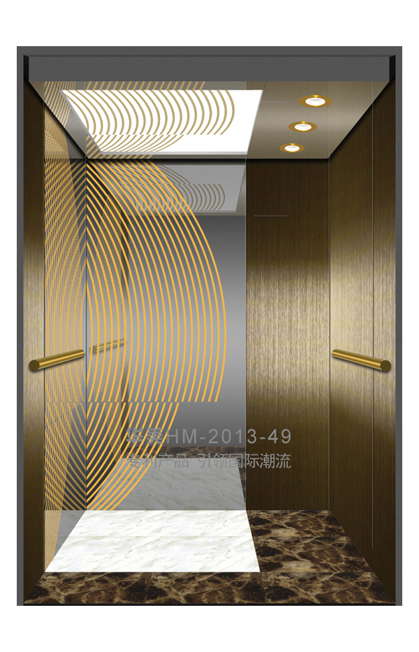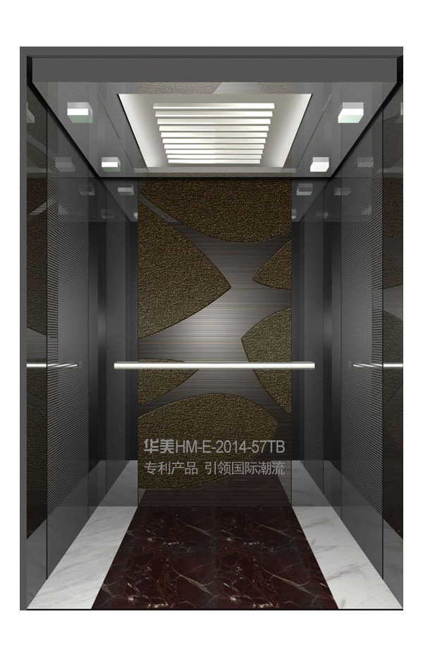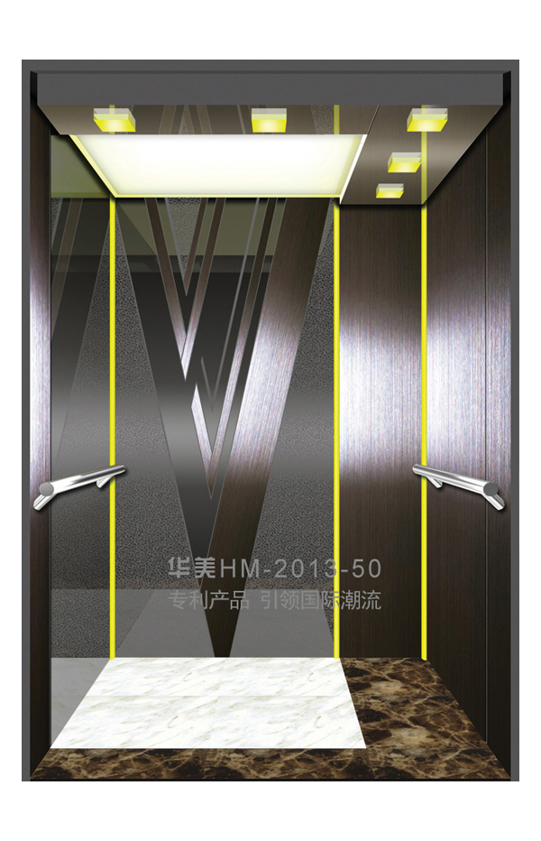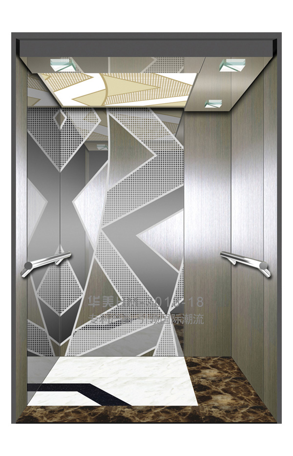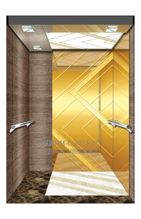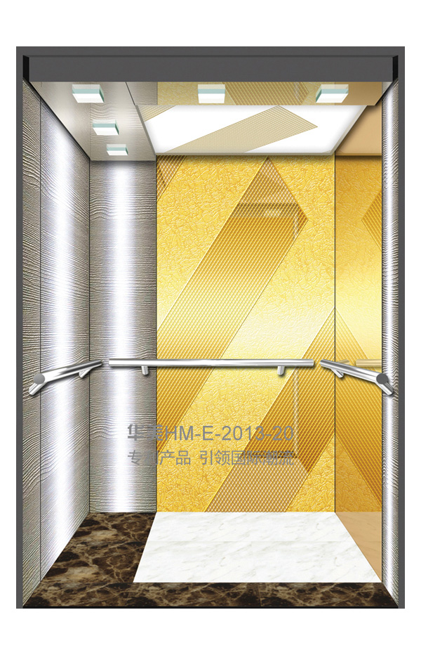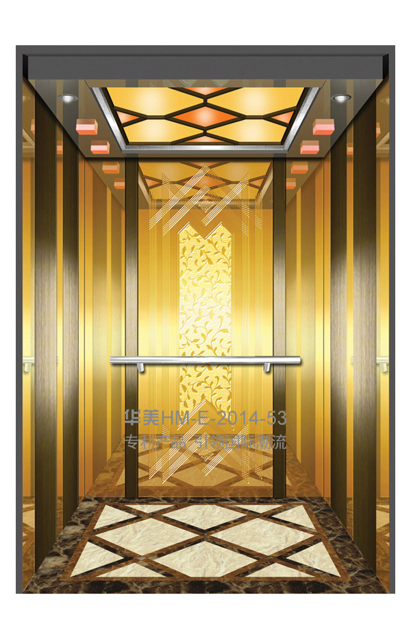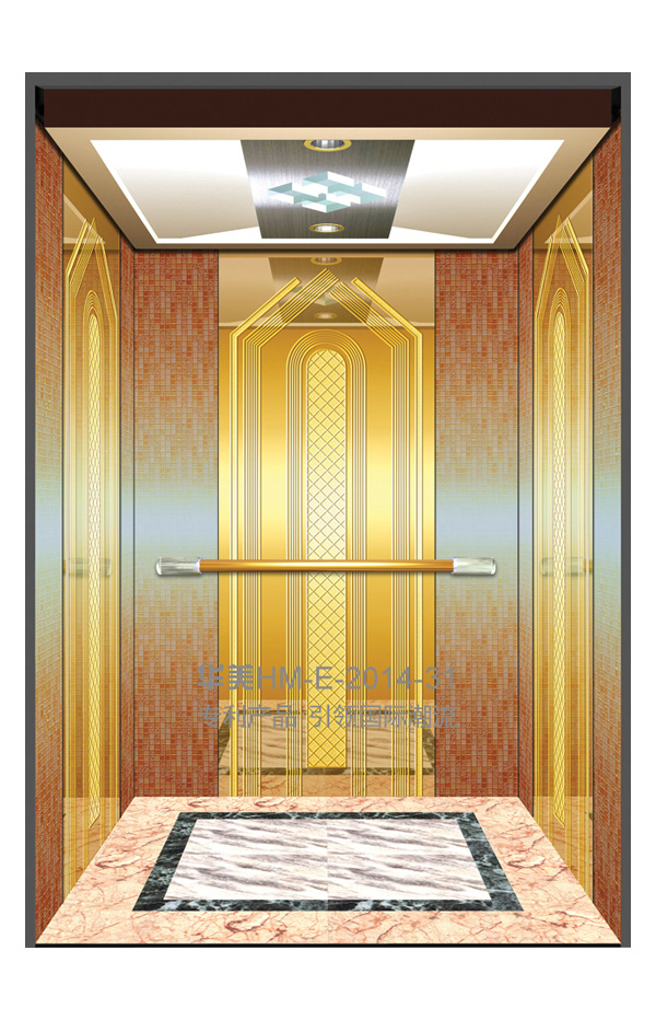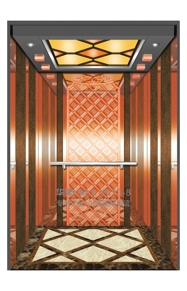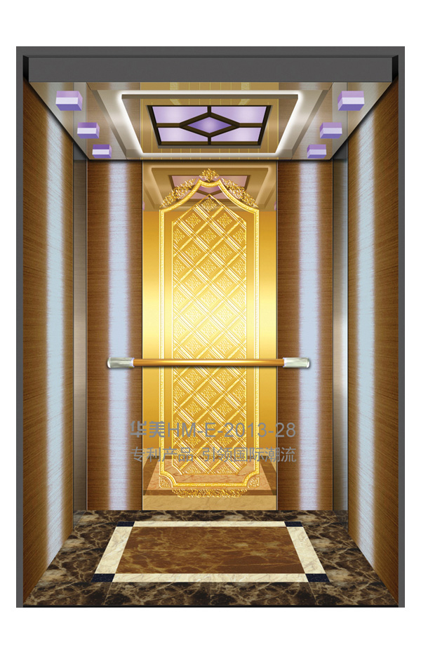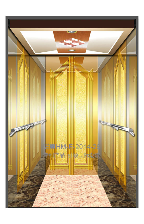 华美全新推出的“浮雕大师”不锈钢艺术轿厢,图案优美,内部更采用了“浮雕大师”工艺,使浮雕面起伏流畅、逼真顺滑、质感超然、金碧辉煌,折射出真金白银的光泽效果,充分体现了浮雕大师与K金的完美结合,极具欣赏价值。且其浮雕面具有耐摩擦、抗指纹、易清洗等优点,是引领国际潮流的专利新产品,创造了全新的艺术境界。