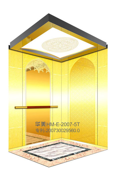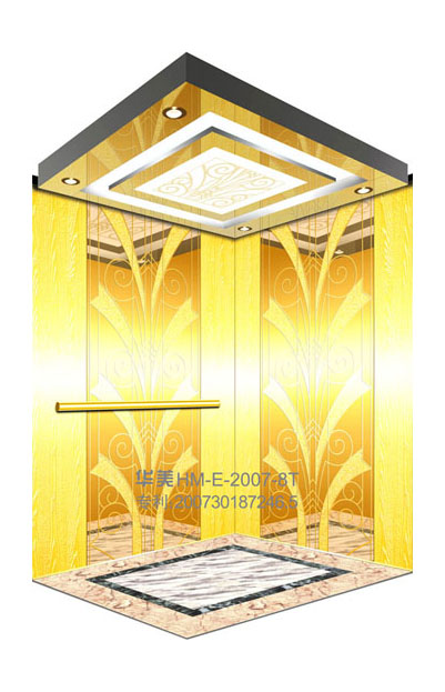 华美全新推出的“浮雕大师”不锈钢艺术轿厢,图案优美,内部更采用了“浮雕大师”工艺,使浮雕面起伏流畅、逼真顺滑、质感超然、金碧辉煌,折射出真金白银的光泽效果,充分体现了浮雕大师与K金的完美结合,极具欣赏价值。且其浮雕面具有耐摩擦、抗指纹、易清洗等优点,是引领国际潮流的专利新产品,创造了全新的艺术境界。