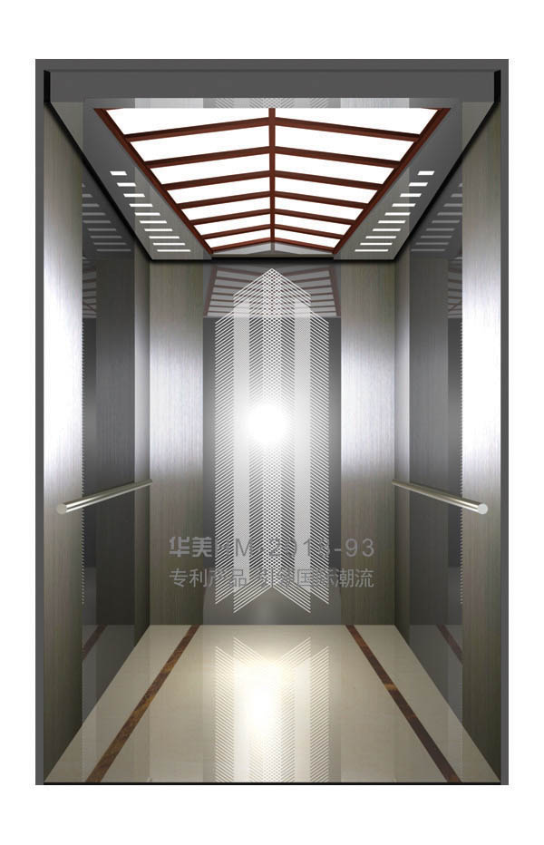 华美全新推出的“浮雕大师”不锈钢艺术轿厢,图案优美,内部更采用了“浮雕大师”工艺,使浮雕面起伏流畅、逼真顺滑、质感超然、金碧辉煌,折射出真金白银的光泽效果,充分体现了浮雕大师与K金的完美结合,极具欣赏价值。且其浮雕面具有耐摩擦、抗指纹、易清洗等优点,是引领国际潮流的专利新产品,创造了全新的艺术境界。