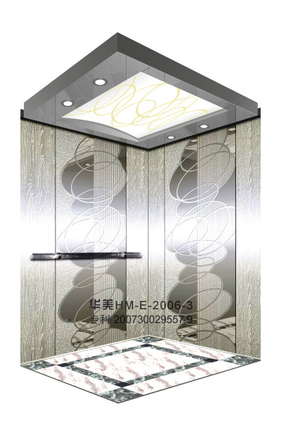 华美全新推出的“浮雕大师”不锈钢艺术轿厢,图案优美,内部更采用了“浮雕大师”工艺,使浮雕面起伏流畅、逼真顺滑、质感超然、金碧辉煌,折射出真金白银的光泽效果,充分体现了浮雕大师与K金的完美结合,极具欣赏价值。且其浮雕面具有耐摩擦、抗指纹、易清洗等优点,是引领国际潮流的专利新产品,创造了全新的艺术境界。