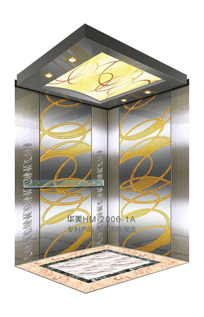 华美全新推出的“浮雕大师”不锈钢艺术轿厢,图案优美,内部更采用了“浮雕大师”工艺,使浮雕面起伏流畅、逼真顺滑、质感超然、金碧辉煌,折射出真金白银的光泽效果,充分体现了浮雕大师与K金的完美结合,极具欣赏价值。且其浮雕面具有耐摩擦、抗指纹、易清洗等优点,是引领国际潮流的专利新产品,创造了全新的艺术境界。