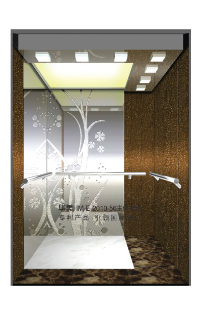 华美全新推出的“浮雕大师”不锈钢艺术轿厢,图案优美,内部更采用了“浮雕大师”工艺,使浮雕面起伏流畅、逼真顺滑、质感超然、金碧辉煌,折射出真金白银的光泽效果,充分体现了浮雕大师与K金的完美结合,极具欣赏价值。且其浮雕面具有耐摩擦、抗指纹、易清洗等优点,是引领国际潮流的专利新产品,创造了全新的艺术境界。