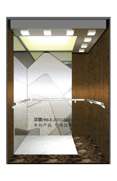 华美全新推出的“浮雕大师”不锈钢艺术轿厢,图案优美,内部更采用了“浮雕大师”工艺,使浮雕面起伏流畅、逼真顺滑、质感超然、金碧辉煌,折射出真金白银的光泽效果,充分体现了浮雕大师与K金的完美结合,极具欣赏价值。且其浮雕面具有耐摩擦、抗指纹、易清洗等优点,是引领国际潮流的专利新产品,创造了全新的艺术境界。