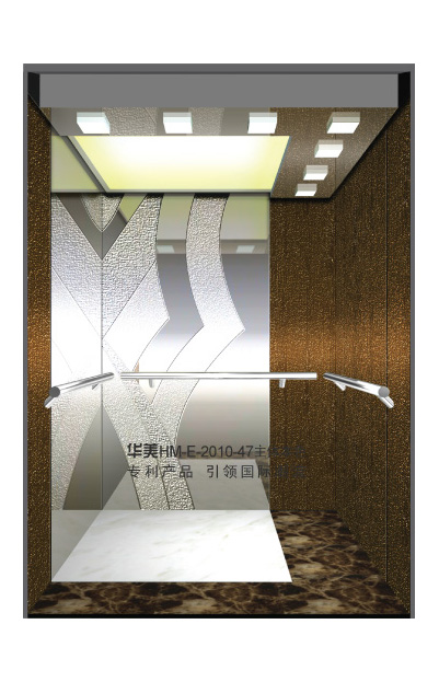 华美全新推出的“浮雕大师”不锈钢艺术轿厢,图案优美,内部更采用了“浮雕大师”工艺,使浮雕面起伏流畅、逼真顺滑、质感超然、金碧辉煌,折射出真金白银的光泽效果,充分体现了浮雕大师与K金的完美结合,极具欣赏价值。且其浮雕面具有耐摩擦、抗指纹、易清洗等优点,是引领国际潮流的专利新产品,创造了全新的艺术境界。