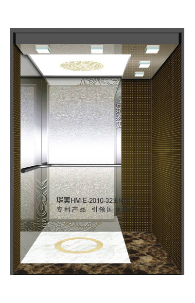 华美全新推出的“浮雕大师”不锈钢艺术轿厢,图案优美,内部更采用了“浮雕大师”工艺,使浮雕面起伏流畅、逼真顺滑、质感超然、金碧辉煌,折射出真金白银的光泽效果,充分体现了浮雕大师与K金的完美结合,极具欣赏价值。且其浮雕面具有耐摩擦、抗指纹、易清洗等优点,是引领国际潮流的专利新产品,创造了全新的艺术境界。