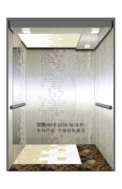 华美全新推出的“浮雕大师”不锈钢艺术轿厢,图案优美,内部更采用了“浮雕大师”工艺,使浮雕面起伏流畅、逼真顺滑、质感超然、金碧辉煌,折射出真金白银的光泽效果,充分体现了浮雕大师与K金的完美结合,极具欣赏价值。且其浮雕面具有耐摩擦、抗指纹、易清洗等优点,是引领国际潮流的专利新产品,创造了全新的艺术境界。
