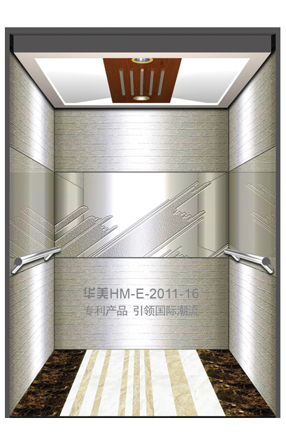 华美全新推出的“浮雕大师”不锈钢艺术轿厢,图案优美,内部更采用了“浮雕大师”工艺,使浮雕面起伏流畅、逼真顺滑、质感超然、金碧辉煌,折射出真金白银的光泽效果,充分体现了浮雕大师与K金的完美结合,极具欣赏价值。且其浮雕面具有耐摩擦、抗指纹、易清洗等优点,是引领国际潮流的专利新产品,创造了全新的艺术境界。