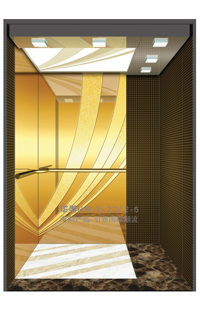 华美全新推出的“浮雕大师”不锈钢艺术轿厢,图案优美,内部更采用了“浮雕大师”工艺,使浮雕面起伏流畅、逼真顺滑、质感超然、金碧辉煌,折射出真金白银的光泽效果,充分体现了浮雕大师与K金的完美结合,极具欣赏价值。且其浮雕面具有耐摩擦、抗指纹、易清洗等优点,是引领国际潮流的专利新产品,创造了全新的艺术境界。