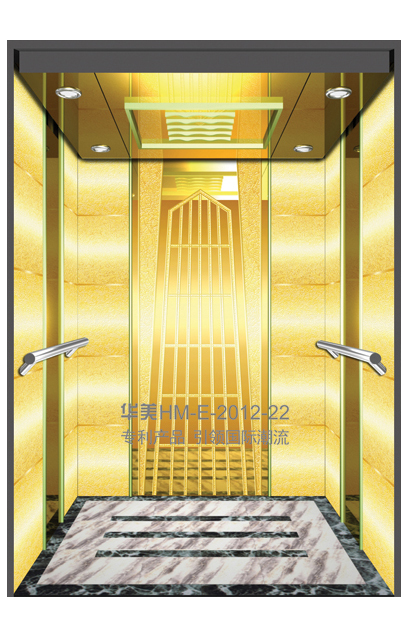 华美全新推出的“浮雕大师”不锈钢艺术轿厢,图案优美,内部更采用了“浮雕大师”工艺,使浮雕面起伏流畅、逼真顺滑、质感超然、金碧辉煌,折射出真金白银的光泽效果,充分体现了浮雕大师与K金的完美结合,极具欣赏价值。且其浮雕面具有耐摩擦、抗指纹、易清洗等优点,是引领国际潮流的专利新产品,创造了全新的艺术境界。