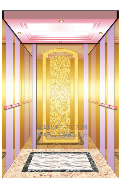 华美全新推出的“浮雕大师”不锈钢艺术轿厢,图案优美,内部更采用了“浮雕大师”工艺,使浮雕面起伏流畅、逼真顺滑、质感超然、金碧辉煌,折射出真金白银的光泽效果,充分体现了浮雕大师与K金的完美结合,极具欣赏价值。且其浮雕面具有耐摩擦、抗指纹、易清洗等优点,是引领国际潮流的专利新产品,创造了全新的艺术境界。