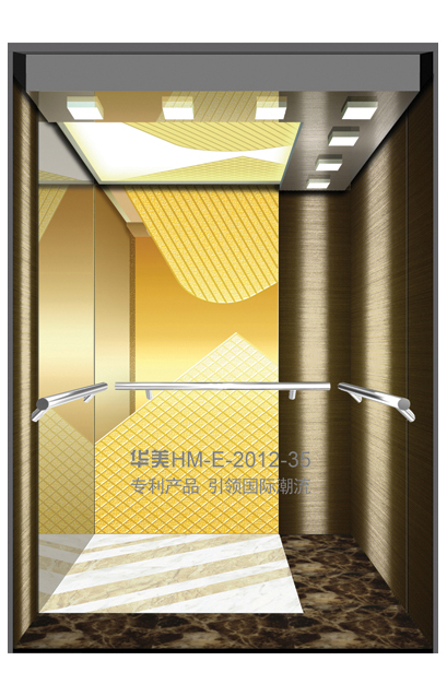 华美全新推出的“浮雕大师”不锈钢艺术轿厢,图案优美,内部更采用了“浮雕大师”工艺,使浮雕面起伏流畅、逼真顺滑、质感超然、金碧辉煌,折射出真金白银的光泽效果,充分体现了浮雕大师与K金的完美结合,极具欣赏价值。且其浮雕面具有耐摩擦、抗指纹、易清洗等优点,是引领国际潮流的专利新产品,创造了全新的艺术境界。