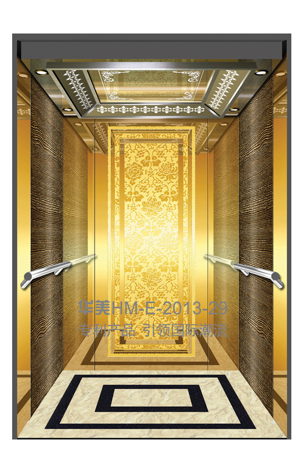 华美全新推出的“浮雕大师”不锈钢艺术轿厢,图案优美,内部更采用了“浮雕大师”工艺,使浮雕面起伏流畅、逼真顺滑、质感超然、金碧辉煌,折射出真金白银的光泽效果,充分体现了浮雕大师与K金的完美结合,极具欣赏价值。且其浮雕面具有耐摩擦、抗指纹、易清洗等优点,是引领国际潮流的专利新产品,创造了全新的艺术境界。