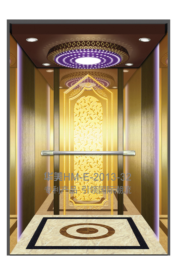 华美全新推出的“浮雕大师”不锈钢艺术轿厢,图案优美,内部更采用了“浮雕大师”工艺,使浮雕面起伏流畅、逼真顺滑、质感超然、金碧辉煌,折射出真金白银的光泽效果,充分体现了浮雕大师与K金的完美结合,极具欣赏价值。且其浮雕面具有耐摩擦、抗指纹、易清洗等优点,是引领国际潮流的专利新产品,创造了全新的艺术境界。