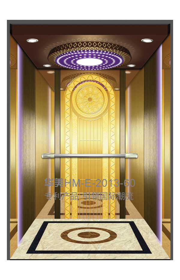 华美全新推出的“浮雕大师”不锈钢艺术轿厢,图案优美,内部更采用了“浮雕大师”工艺,使浮雕面起伏流畅、逼真顺滑、质感超然、金碧辉煌,折射出真金白银的光泽效果,充分体现了浮雕大师与K金的完美结合,极具欣赏价值。且其浮雕面具有耐摩擦、抗指纹、易清洗等优点,是引领国际潮流的专利新产品,创造了全新的艺术境界。