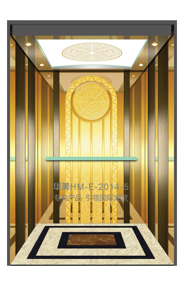 华美全新推出的“浮雕大师”不锈钢艺术轿厢,图案优美,内部更采用了“浮雕大师”工艺,使浮雕面起伏流畅、逼真顺滑、质感超然、金碧辉煌,折射出真金白银的光泽效果,充分体现了浮雕大师与K金的完美结合,极具欣赏价值。且其浮雕面具有耐摩擦、抗指纹、易清洗等优点,是引领国际潮流的专利新产品,创造了全新的艺术境界。