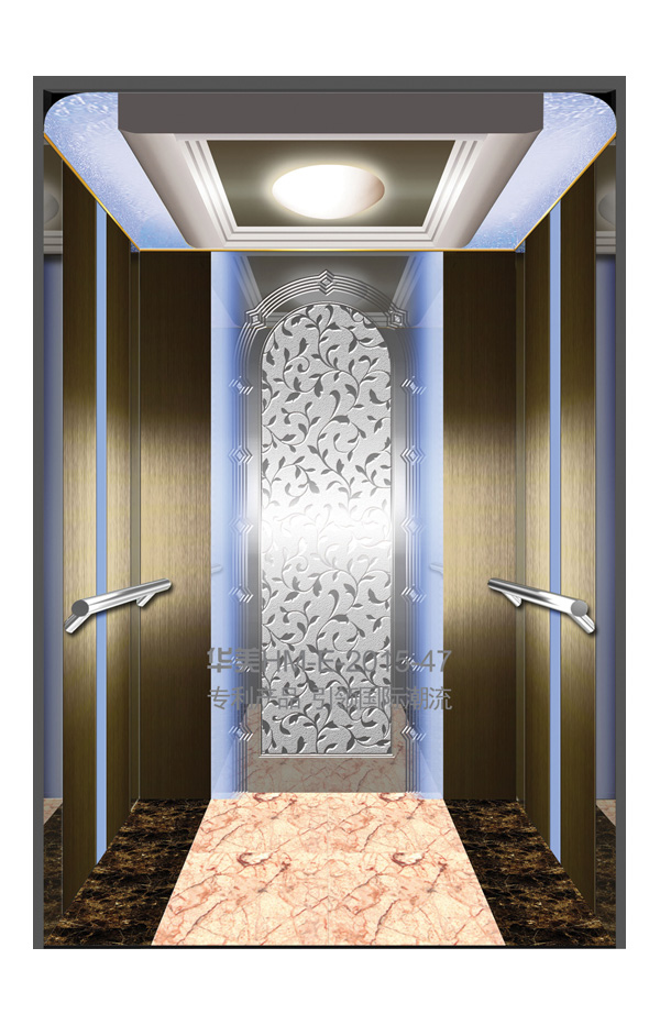 华美全新推出的“浮雕大师”不锈钢艺术轿厢,图案优美,内部更采用了“浮雕大师”工艺,使浮雕面起伏流畅、逼真顺滑、质感超然、金碧辉煌,折射出真金白银的光泽效果,充分体现了浮雕大师与K金的完美结合,极具欣赏价值。且其浮雕面具有耐摩擦、抗指纹、易清洗等优点,是引领国际潮流的专利新产品,创造了全新的艺术境界。