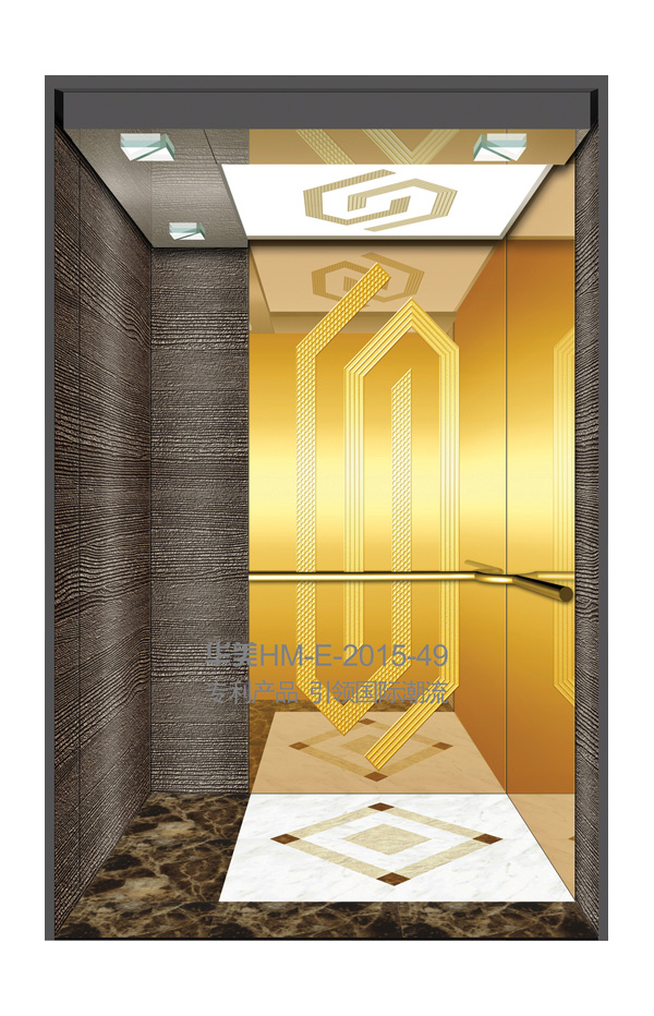 华美全新推出的“浮雕大师”不锈钢艺术轿厢,图案优美,内部更采用了“浮雕大师”工艺,使浮雕面起伏流畅、逼真顺滑、质感超然、金碧辉煌,折射出真金白银的光泽效果,充分体现了浮雕大师与K金的完美结合,极具欣赏价值。且其浮雕面具有耐摩擦、抗指纹、易清洗等优点,是引领国际潮流的专利新产品,创造了全新的艺术境界。