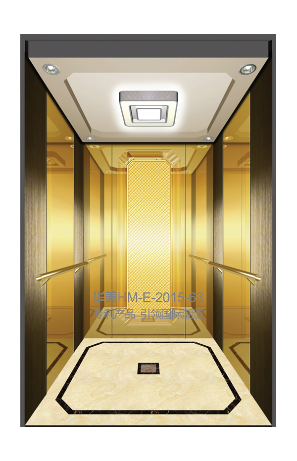 华美全新推出的“浮雕大师”不锈钢艺术轿厢,图案优美,内部更采用了“浮雕大师”工艺,使浮雕面起伏流畅、逼真顺滑、质感超然、金碧辉煌,折射出真金白银的光泽效果,充分体现了浮雕大师与K金的完美结合,极具欣赏价值。且其浮雕面具有耐摩擦、抗指纹、易清洗等优点,是引领国际潮流的专利新产品,创造了全新的艺术境界。